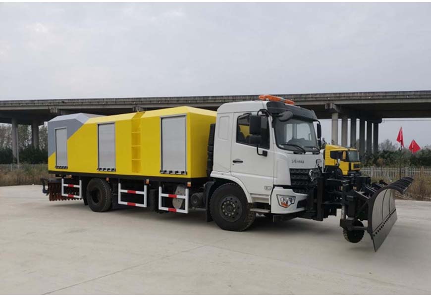 | 上裝配置 | 前置推雪鏟、中置破冰輥+除冰鏟、后置掃雪滾刷,150Kw副發(fā)動機,封閉式廂體結(jié)構帶中部爬梯,左右各 3 個鋁合金卷簾門,尾部配備雙大箭頭 LED 指示燈+LED 顯示屏,叁段式獨立避障,每段都具有自動上彈、自動復位的避障功能,具有浮動和隨路面仿形功能。除雪鏟鏟刃和破冰輥刀片高強度耐磨合金鋼,硬度 50-55HR。后置除雪滾刷,用聚丙烯刷毛和強性鋼絲混合制成。 | ||