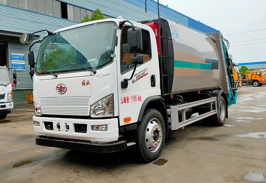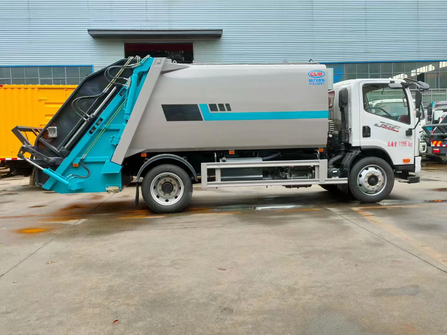 上裝配置 箱體容積11立方,采用邊四底四高強(qiáng)板制作,機(jī)器人自動(dòng)焊,電泳工藝涂裝,威森博樂多路閥,皖液油泵,填裝器外置滑板油缸結(jié)構(gòu),尾部翻轉(zhuǎn)結(jié)構(gòu)可掛120/240L垃圾桶。