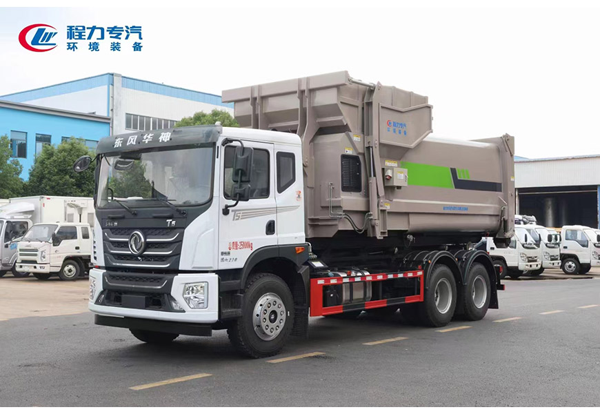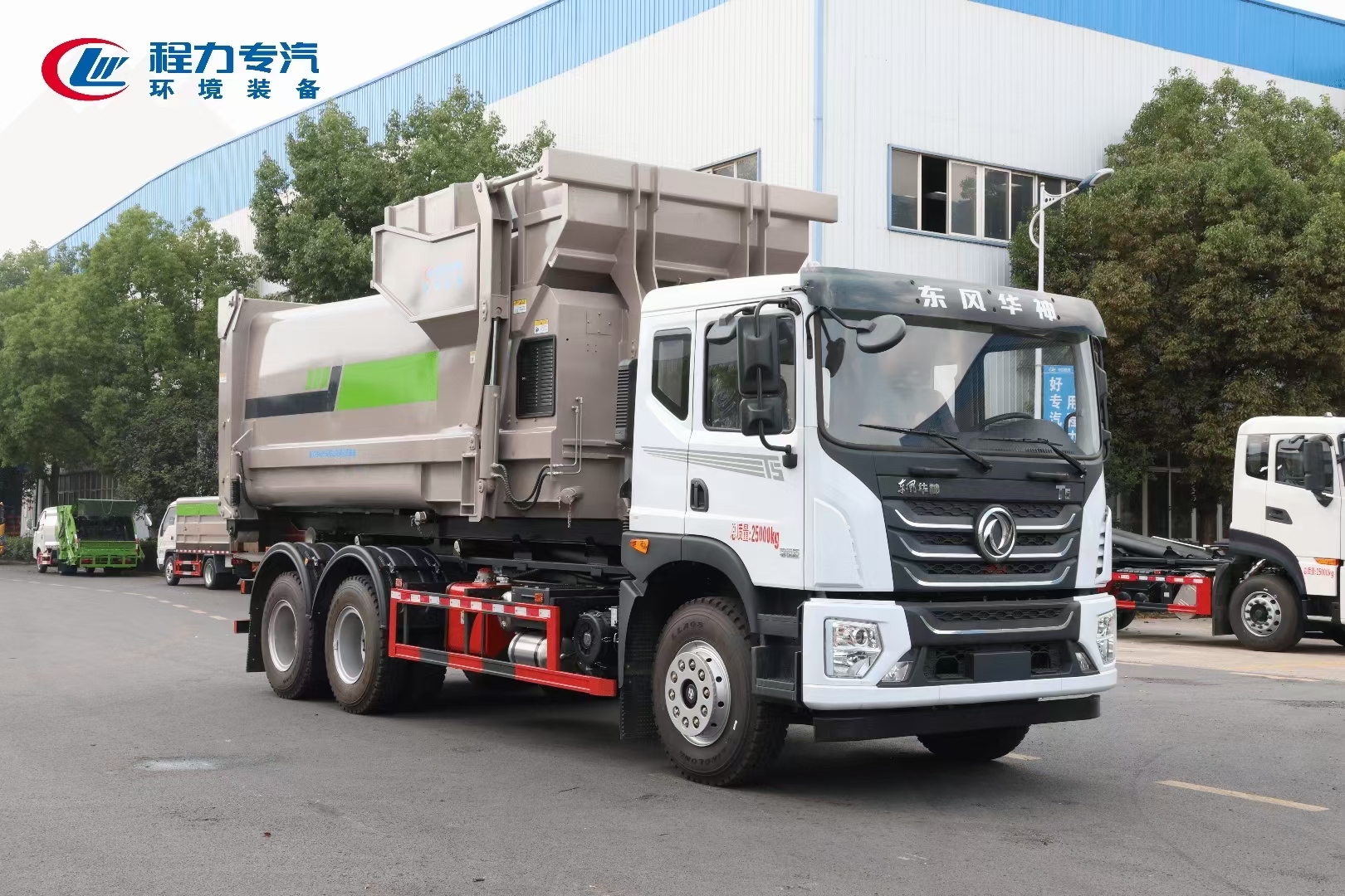 程力專汽東風(fēng)華神后雙橋勾臂垃圾車+移動壓縮箱