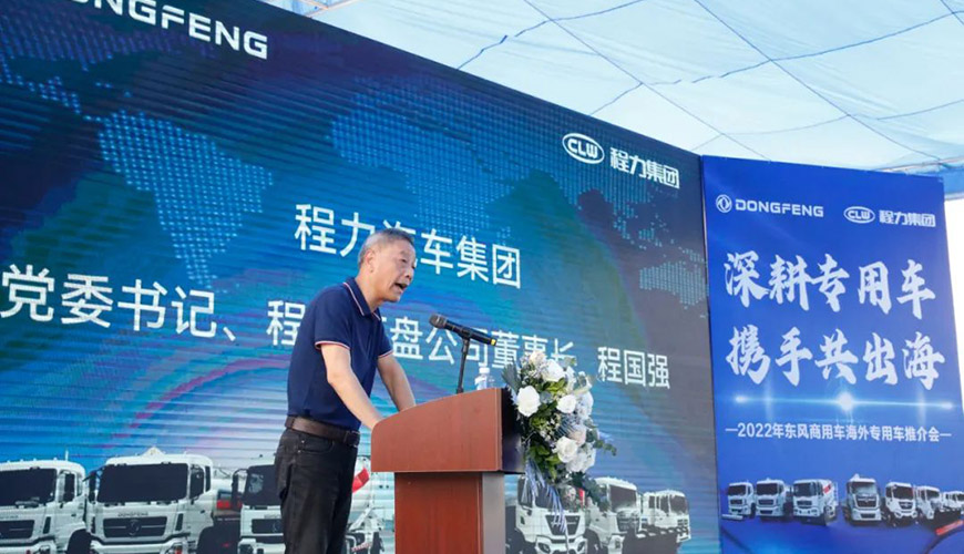 5月27日上午,陽光明媚晴空萬里,在風景如畫花園式的程力新廠底盤大樓廣場上,程力汽車集團與中國東風汽車工業(yè)進出口有限公司,聯袂舉行了一場隆重而又別開生面的“深耕專用車,攜手共出海”商用車新產品大型推薦會。