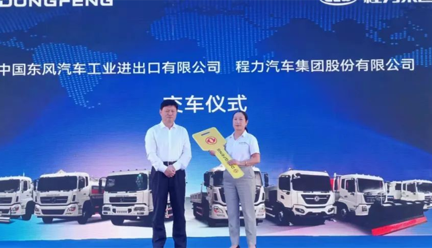 隨后,中國東風汽車工業(yè)進出口有限公司商用車海外營銷部中重型產品總監(jiān)吳永剛與程力集團國際市場部業(yè)務經理陳葦舉行了交車鎖匙牌授牌儀式。