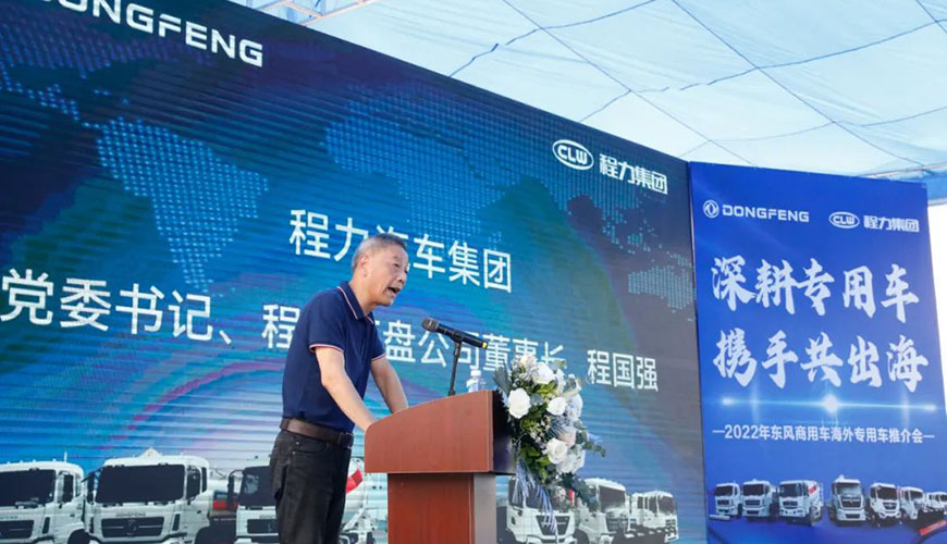 5月27日上午,陽光明媚晴空萬里,在風景如畫花園式的程力新廠底盤大樓廣場上,程力汽車集團與中國東風汽車工業(yè)進出口有限公司,聯袂舉行了一場隆重而又別開生面的“深耕專用車,攜手共出海”商用車新產品大型推薦會。