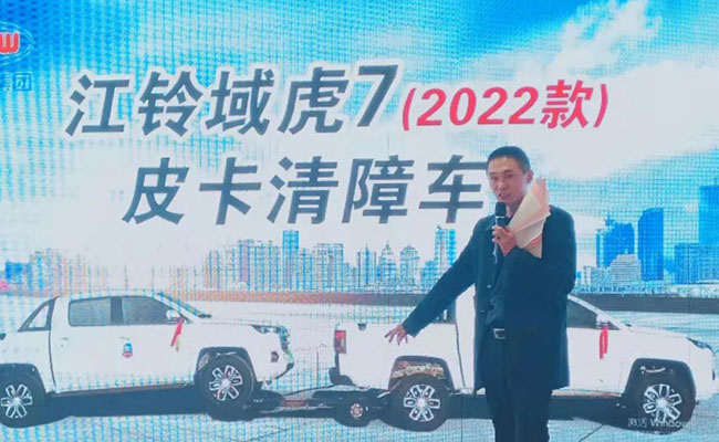 同期,程力商用車專業(yè)廠與江鈴公司聯(lián)合研發(fā)的皮卡清障車專用底盤御虎7產品推薦會和2021年度答謝會也在12月18日隆重舉行。