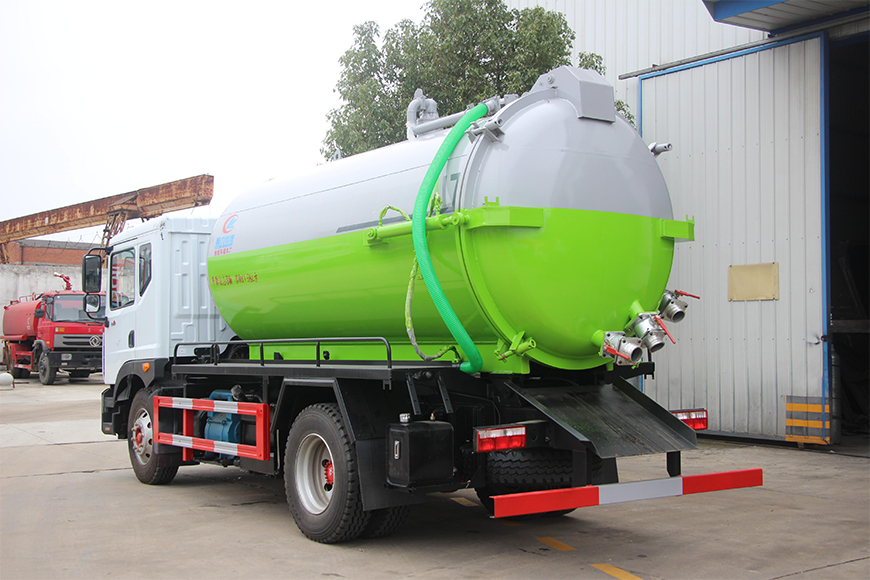 | 上裝配置 | 污罐:Q235武鋼6MM厚碳鋼板,標配采用億豐SK-12水循環(huán)泵。防溢閥,視糞管,配一根8米吸污管,罐體封頭一次壓鑄成型、罐體帶舉升,后蓋為液壓開啟。罐內(nèi)污物可通過后蓋直接傾倒,具有真空度高、噸位大、效率高、用途更廣泛的特點。 | ||